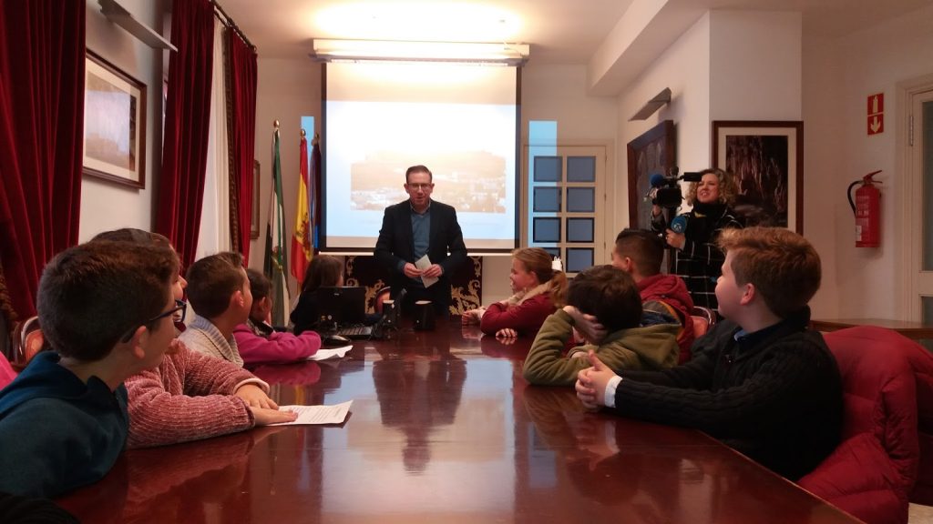 El alcalde de Aracena los recibió en el salón de actos del ayuntamiento. Se mostró muy contento con la iniciativa de los niños y niñas, valorando positivamente que desde el colegio se planteen este tipo de proyectos en favor de la igualdad entre hombres y mujeres.